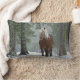 Brown Horse in a Winter Forest with Snow Falling Lumbar Cushion