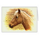 This blank card features a beautiful gold and brown horse lit by the yellow sun.