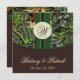 New for the Fall Collection--Brown & Hunter Green Camo Wedding Invitatiions---match the RSVP cards and more found at the bottom of this page. Each invitation features an elegant camo or mossy oak like print with medium & hunter green accent colours. The front also features a monogram that you can customise to the groom's last name.