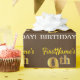 This wrapping paper design features a message like "FirstName’s 9th BIRTHDAY!", with the "9th" having a faux/imitation gold-like colour appearance. The name can be personalised, and the background is coloured brown. It could perhaps be used when wrapping gifts being given for somebody’s ninth birthday. [~Z0000180]