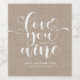 White on brown kraft "Love you more than wine" Valentine's Day personalised wine bottle label in modern and elegant handwriting typography. Customise with short greeting/message and sender/gifter's name.