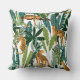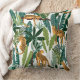 Brown leopard in tropical lush jungle leaves wrapp cushion