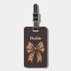 A brown, bistre background color, decorated with a large bow with leopard print on the front. Personalize and add your name on the front. Your contact information on the back.