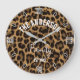 Brown Leopard Print Minimalist Analog Roman Numera Large Clock
