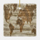 Brown map of the world print ceramic ornament