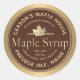 An earthy-coloured maple syrup label with the words "Maple Syrup" in an embossed metallic gold font. Metallic gold border. GOLD maple leaf and text.