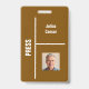 Enhance your business event with our brown minimal event ID badge, designed specifically for press attendants. Crafted for professionalism and functionality, this ID badge features a clear identification area and durable materials to ensure longevity. Perfect for corporate events, conferences, and security functions, it not only provides easy identification but also complements any uniform with its stylish design. Ensure safety and style with our premium event ID badge solution.