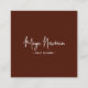 A sleek and stylish square business card featuring a solid terracotta background with your name or company name in an elegant signature script. Fully customisable to match your brand identity—edit the background colour, text, and logo effortlessly.