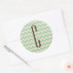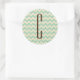 Brown Monogram on Turquoise Green Chevron Pattern Classic Round Sticker