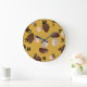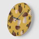 Brown Mushroom Pattern on Mustard Yellow Large Clock