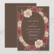 A rich tapestry of deep crimson and creamy ivory blossoms encircles an elegant oval. This design evokes a sense of vintage romance and refined beauty.