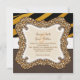 Brown, yellow, and orange leopard print and tiger stripes Wedding Invitation with white accents and photo of brown paper with 3D textured look. A bold fun African safari themed wedding invitation with the bride and groom names on the front and the wedding invitation text on the back of the card. Design by Elke Clarke © Graphics licensed.