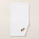 Bath towel set, consisting of a face cloth, hand towel and bath towel with an owl design. You can customise this bath towel set with any text of your choice. Should you require any help with customising then contact us through the message link on this page. Owl design bathroom towel set