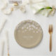 Brown Paper Simple Rustic White Lights Wedding Plates. Customise with any text. Matching items are available.