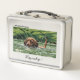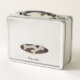 This is a standard metal lunchbox that appears to work just fine. We designed this box ourselves with an uploaded photo and custom text on the front and back. It looks absolutely beautiful except the front of the lunchbox is not centered like it shows in the photo. The print borders don't align with the inset flat part of the box where the preview photo online showed it perfectly centered in there. The back looks nice and centered though.