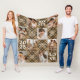 Brown Plaid Family Monogram 8 Photo Christmas Fleece Blanket