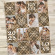 Celebrate the holidays with this elegant christmas themed blanket featuring earthy brown plaid squares adorned with holiday wishes, family names, a festive family crest, and the year. The 8 photo collage template lets you insert special photos from the year, making this a meaningful keepsake for your home or a thoughtful holiday gift. Capture the warmth of the season in your living space.