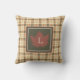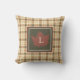 Welcome fall with this custom plaid pattern throw pillow. Throw pillow features beautiful autumn colours -- tan, brown, green, burnt orange, and yellow. A traditional maple leaf and your family monogram initial completes the look.