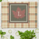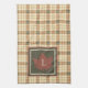 Brown Plaid Pattern Fall Maple Leaf Monogram Tea Towel