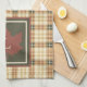 Welcome fall with this custom plaid pattern kitchen towel. Towel features beautiful autumn colours -- tan, brown, green, burnt orange, and yellow. A traditional maple leaf and your family monogram initial completes the look.