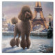 Brown Poodle Winter in Paris Painting Art Ceramic Tile