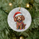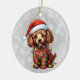 Brown Poodle Wrapped in Christmas Lights Ceramic Ornament