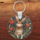 Brown Rabbit Red Tulips William Morris Inspired Key Ring