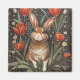 Brown Rabbit Red Tulips William Morris Inspired Magnet