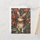 Brown Rabbit Red Tulips William Morris Inspired Postcard