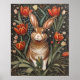 Brown Rabbit Red Tulips William Morris Inspired Poster