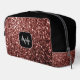 Brown red faux glitter sparkles black Monogram Dopp Kit