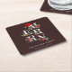 Brown Red Green White Merry Christmas Foliage Square Paper Coaster