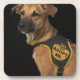 Brown rescue dog with adopt me vest coaster