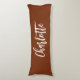 Brown rust, terracotta coloured. Personalise and add your name. Large white hand lettered style script.