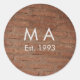 Brown rustic brick stone add name letter year date classic round sticker