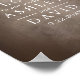 My thoughts on this product was excellent. Well printed in a gloss finishing and just the size l ordered. It arrived in good condition and am overall satisfied with the product. The printing turned out great. I was quite surprised with the finishing touch to the poster. The semi gloss was just right and a perfect size to display at the wedding.