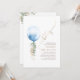 Elegant baby shower invitations "It's a Boy" with the giant blue balloon and gold and sage green eucalyptus greenery garland