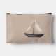 Brown Sailing Boat and Name on Beige Accessory Pouch