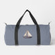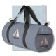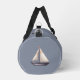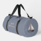 Brown Sailing Boat and Name on Gray Duffle Bag
