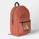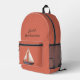 Simple design in soft red. A sailboat on the pocket and above it your name or the name of your boat in elegant and almost black.