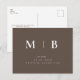 Brown Simple Contemporary Monogram Save the Date Postcard