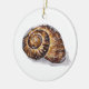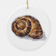 a traditional watercolor artwork of a brown coloured spiral shaped snail shell on a ceramic ornament.