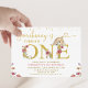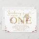 Sweet bunny themed 1st birthday invitation featuring a brown bunny, faux gold text and dots as well as some wildflowers. This some bunny is turning one first birthday invitation is ideal for a birthday around Easter time.