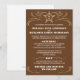 This wedding invitation is brown with beige coloured calligraphy ornaments and white text. Customise the star in the header with the initials of the future bride and groom.