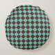 Brown Teal Chequered Diamond Pattern Round Pillow