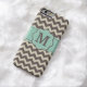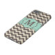 Show off your style in a fun way with this brown and teal chevron monogram phone case.