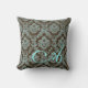 Brown / Teal Distressed Damask Personalised Pillow