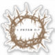 This beautiful vinyl sticker features Thorn Crown with Bible Verse 1 Peter 5:7, creating a perfect blend of faith and encouragement. Ideal for personalising notebooks, water bottles, laptops, cell phone cases, skateboards or any space that needs a touch of inspiration and grace.