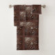 Brown Tooled Faux Leather and Diamond Bath Towel Set