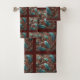 🤎 Tooled Brown Faux Leather & Teal Feathers Towel Set 🤎